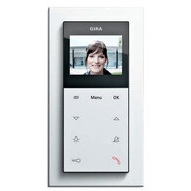 Die Gira Wohnungsstation Video AP ist mit einem hochauflösenden 5,6 cm [2,2“] großen TFT-Farbdisplay ausgestattet, das auch bei seitlichem Betrachtungswinkel eine gute Bildqualität bietet. Mit Tasten, die bereits auf leichte Berührung reagieren, lassen sich Funktionen wie Licht einschalten, Tür öffnen, Rufton deaktivieren und die Rufannahme ganz einfach steuern. Die Türsprechanlagen sind in die Gira Schalterprogramme integriert. Das bedeutet Einheit im Design – und eine große Freiheit bei der Wahl der Farb- und Rahmenvarianten.